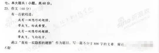 2009年的北京高考作文就是用张韶涵这首《隐形的翅膀》出的题,要知道这是首次也是唯一一次以流行歌曲命名的高考作文题目。