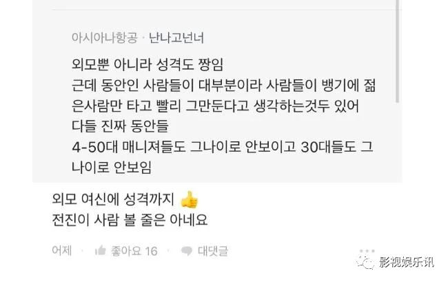 节目播出后,网民们除了大赞JunJin妻子长得美,有香港女星的味道之外,更是有不少JunJin妻子同公司的前、后辈上网留言,全都是夸赞她的话语,「韩亚航空最天使的前辈,飞行时非常照顾我,前辈一定要幸福啊,外貌性格都是最棒的!」、「 大家经常提到她,作为女生的我都觉得她非常好,又帅气,希望她幸福」、「皮肤会发光,还没有皱纹,真女神」、「不仅是外貌,连性格都很好」、「女神外貌,连性格都完美,JunJin很有眼光」、「 和前辈一起工作过,我是年纪最小的,那时真的很幸福」、「wuli前辈真的是女神啊,外貌和性格都是天使级」等。