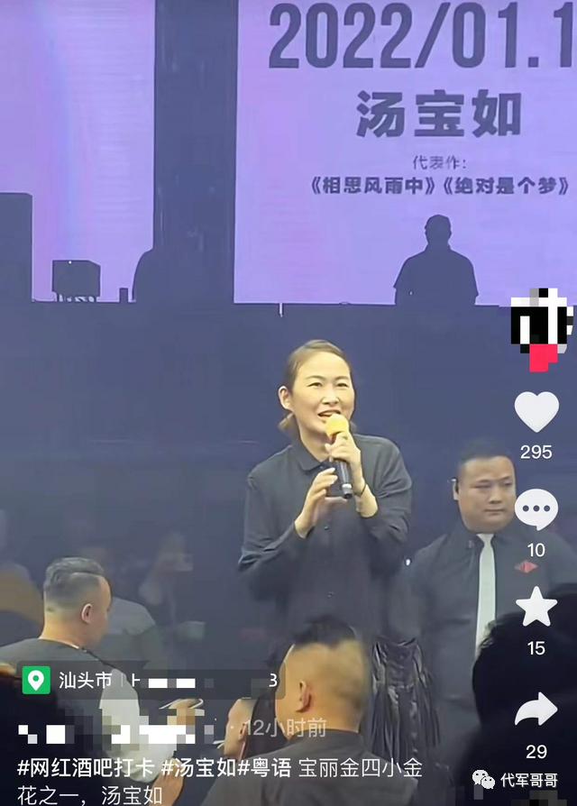 不久前,有网友在短视频平台上曝光汤宝如的近况,并晒出她现身内地酒吧商演的画面,引发持续热议。