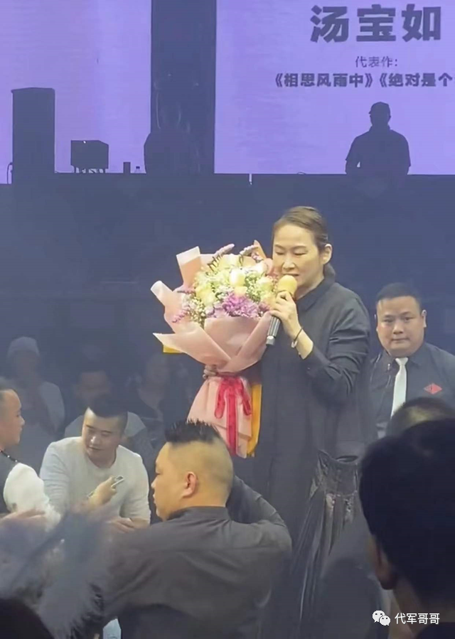 台下的观众们也非常激动,不仅随着汤宝如的歌声挥舞手中的荧光棒,还给汤宝如送上了一大捧鲜花,看来汤宝如隐退多年,人气却依然不减。