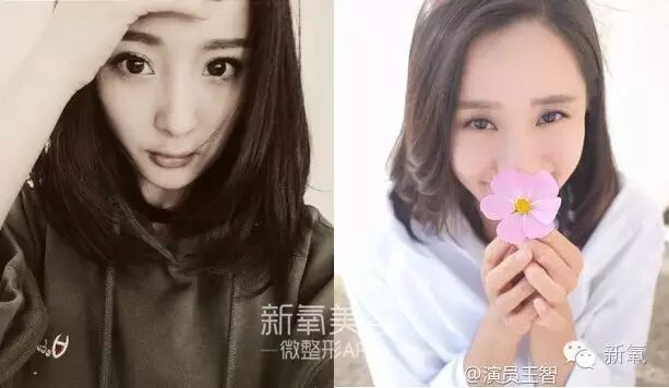 但端端正正地对比,发现王智的下巴要比杨幂尖一丢丢。