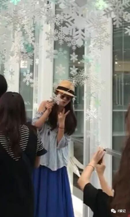 其实安以轩当时是在拍照,有一位穿着黑色短袖衣服的友人正在蹲下帮她拍照,看安以轩还使出剪刀手,然后抓着雪花形状的挂件在那开心摆姿势。上传视频的网友大赞安以轩很萌和漂亮。