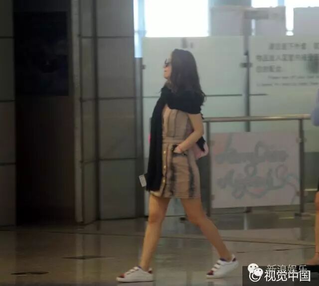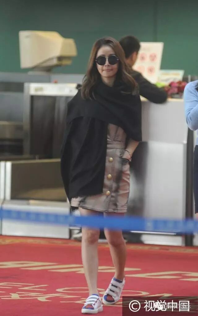 而林心如则穿了一身宽松的红色小洋装,还有平底鞋。