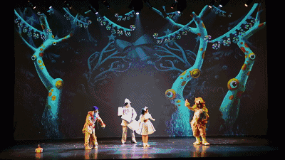 华丽的服装道具,绚丽的灯光效果,奇幻的舞台场景,整个舞台还原了我们心中童话该有的样子。真人演员与多媒体动画场景无缝接演,营造裸眼3D视觉特效,在方寸舞台上再造神奇梦幻奥兹国。