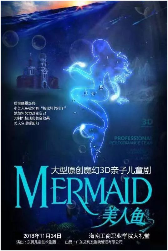 大型魔幻3D亲子儿童剧《美人鱼》来海口啦~故事颠覆经典,小美人鱼化身“被宠坏的孩子”,她如何努力改变自己?