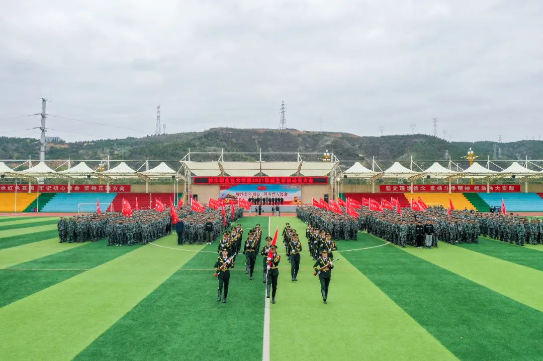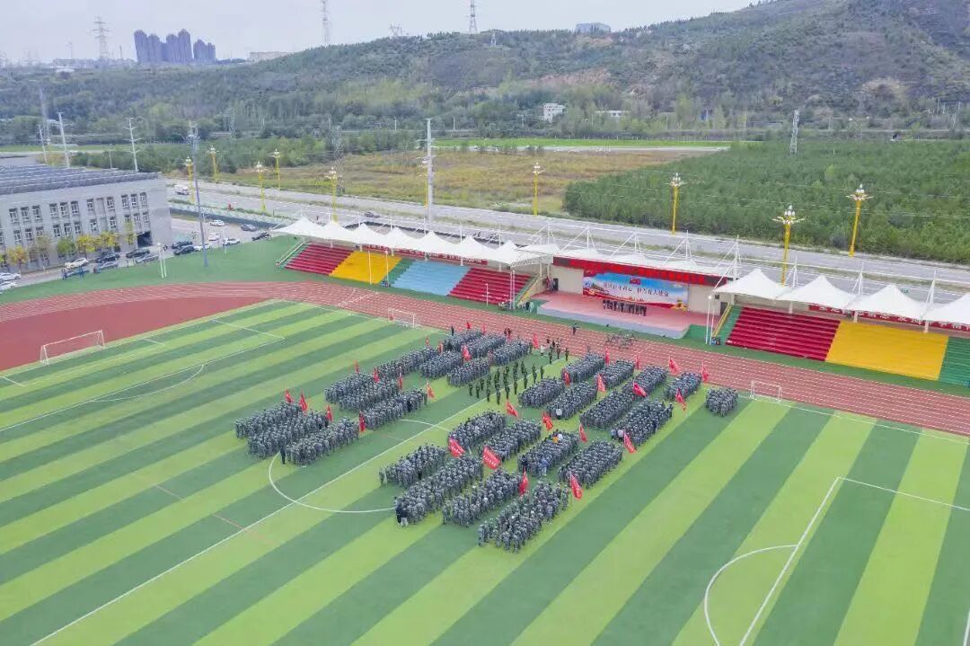 10月8日,神木职业技术学院2021级新生军训动员大会在学院操场举行。