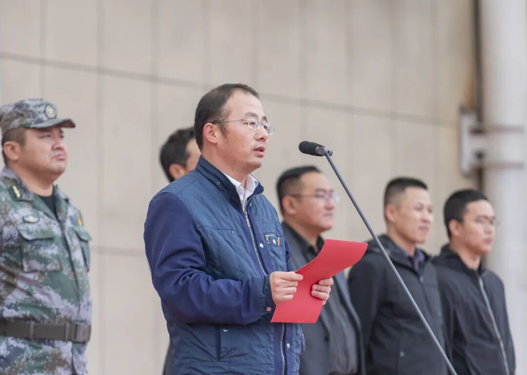 副校长郭亚芳宣布神木职业技术学院2021级军训开训