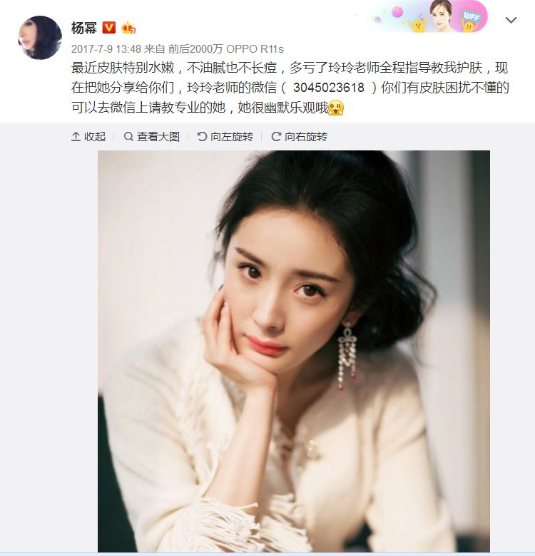 不得不说,杨幂时常会面临不规律和日夜颠倒的情况,重点是杨幂把肌肤保养得很好,质感也很好,光滑细腻,真的让人好羡慕,就像微博里说的一样。