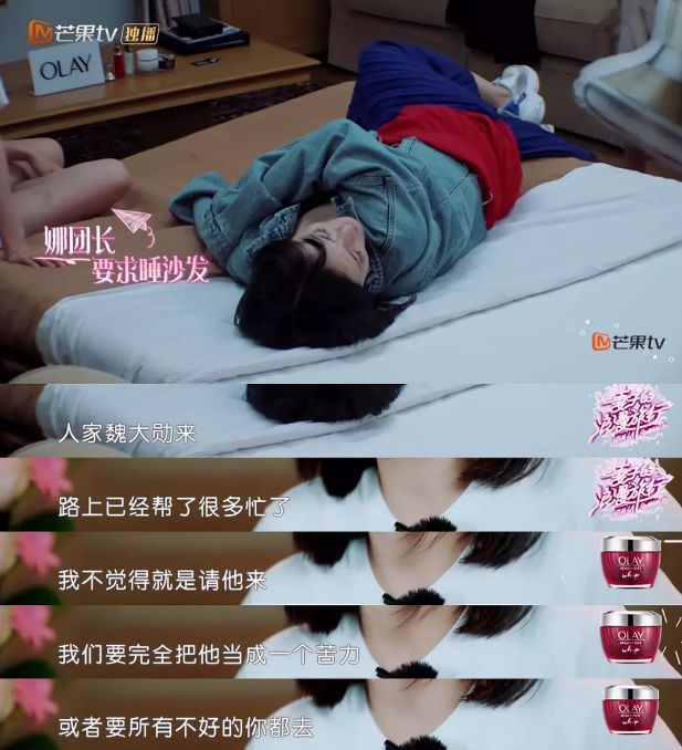 在有一天进入分配房间窘境的时候,谢娜主动要求自己睡沙发、让魏大勋去睡床,因为她不觉得魏大勋来这儿就是个苦力。