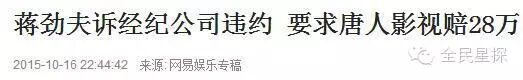 一个多月后,第二回合,蒋劲夫直接把唐人告上法院,起诉唐人违约,要求唐人赔偿28万人民币。