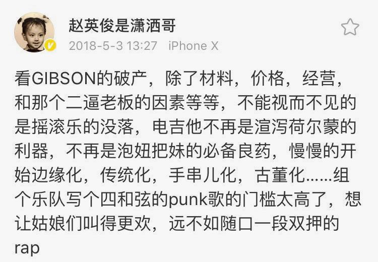 仔细想想,荷尔蒙分泌过剩的一帮孩子投入到弹吉他、玩摇滚的事情里还挺好的,它最大的意义是让我们那些年轻的岁月远离了很多不健康的东西,毕竟是玩乐器、是对音乐的追求。