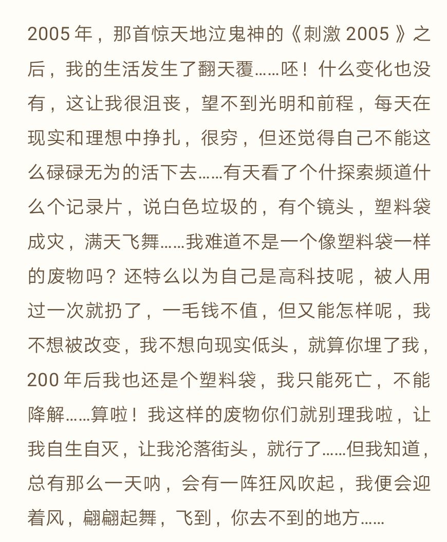 郁郁不得志之下,赵英俊写了这首《塑料袋》,从此再也没给自己写过歌,改成了只收钱写命题作文:“你让我写一首歌,我写得出,只要给我钱。”