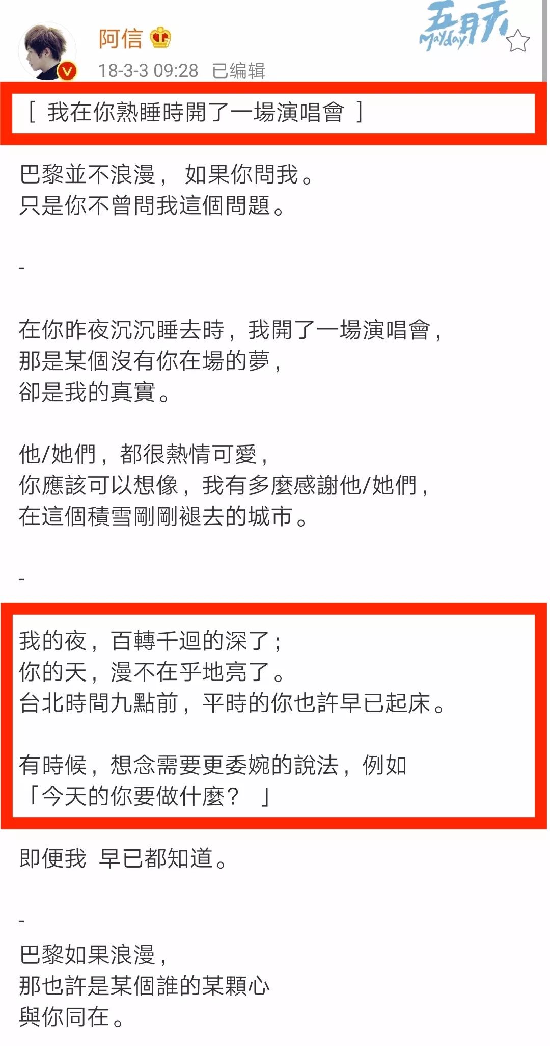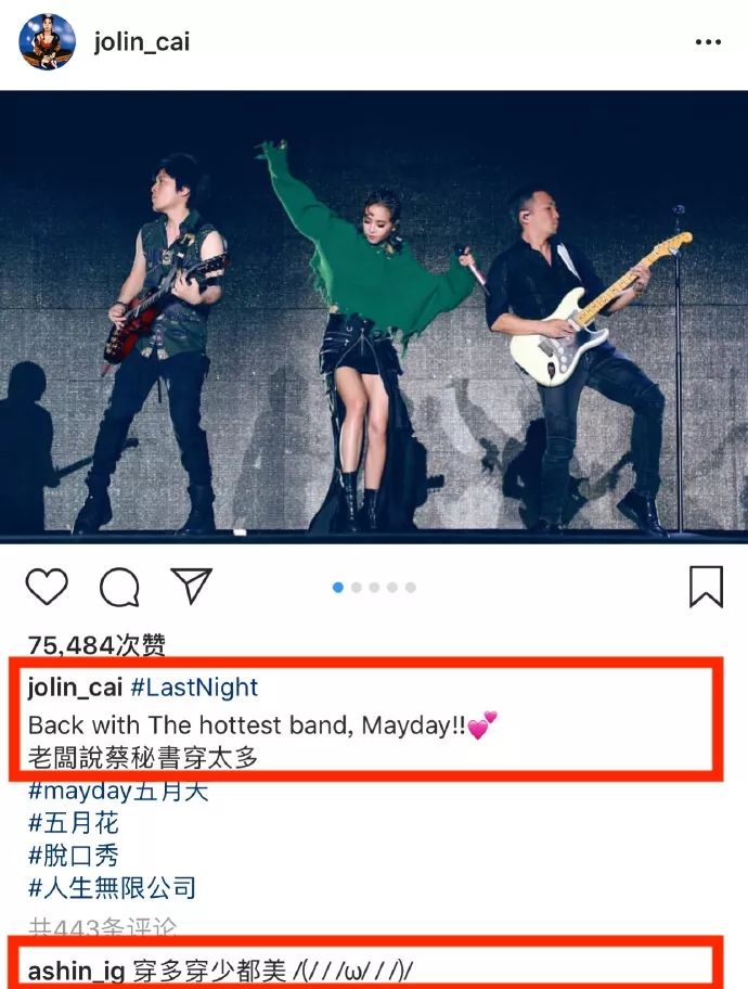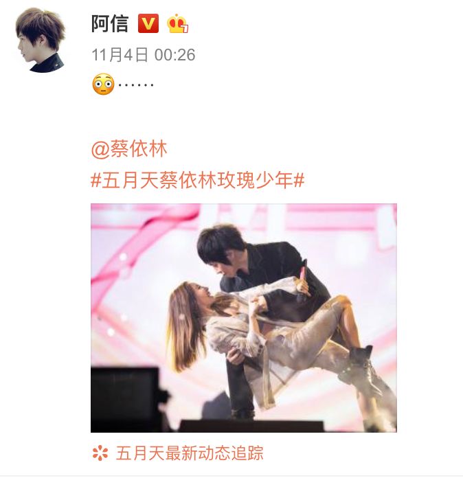 演唱会结束后,向来害羞的阿信更是一反常态,在微博里po出这张照片,cue了蔡依林本人。