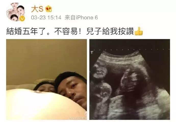乔恩王凯深夜晒恩爱,大S宣布二胎怀儿子,