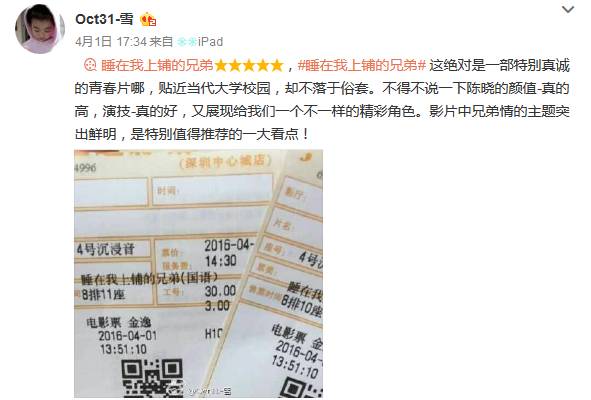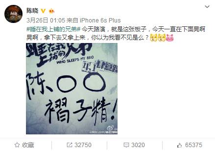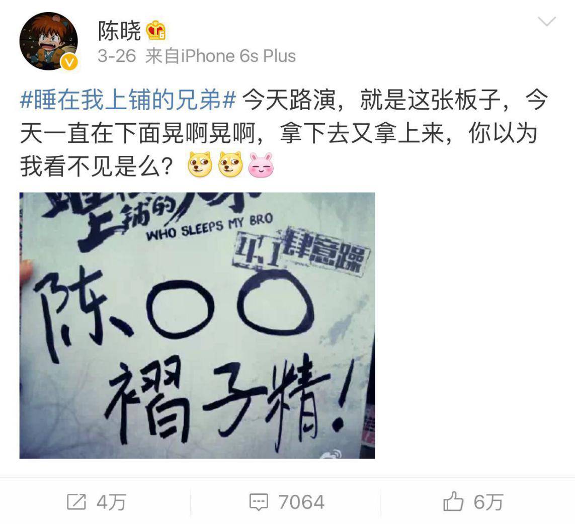 听说最近陈晓在新电影《睡在我上铺的兄弟中》中