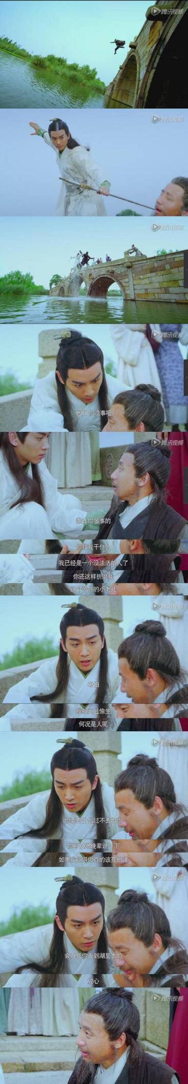 前几集刚一出场陈晓就暴露他那逗比段子手的本质了,遇到准备跳水自尽的老爷爷,他帅气来了一水上漂登场,跟老爷爷说:“蝼蚁尚可偷生……”蝼蚁。。。。蝼蚁。。。。。。蚁。。。。。。。。。。。