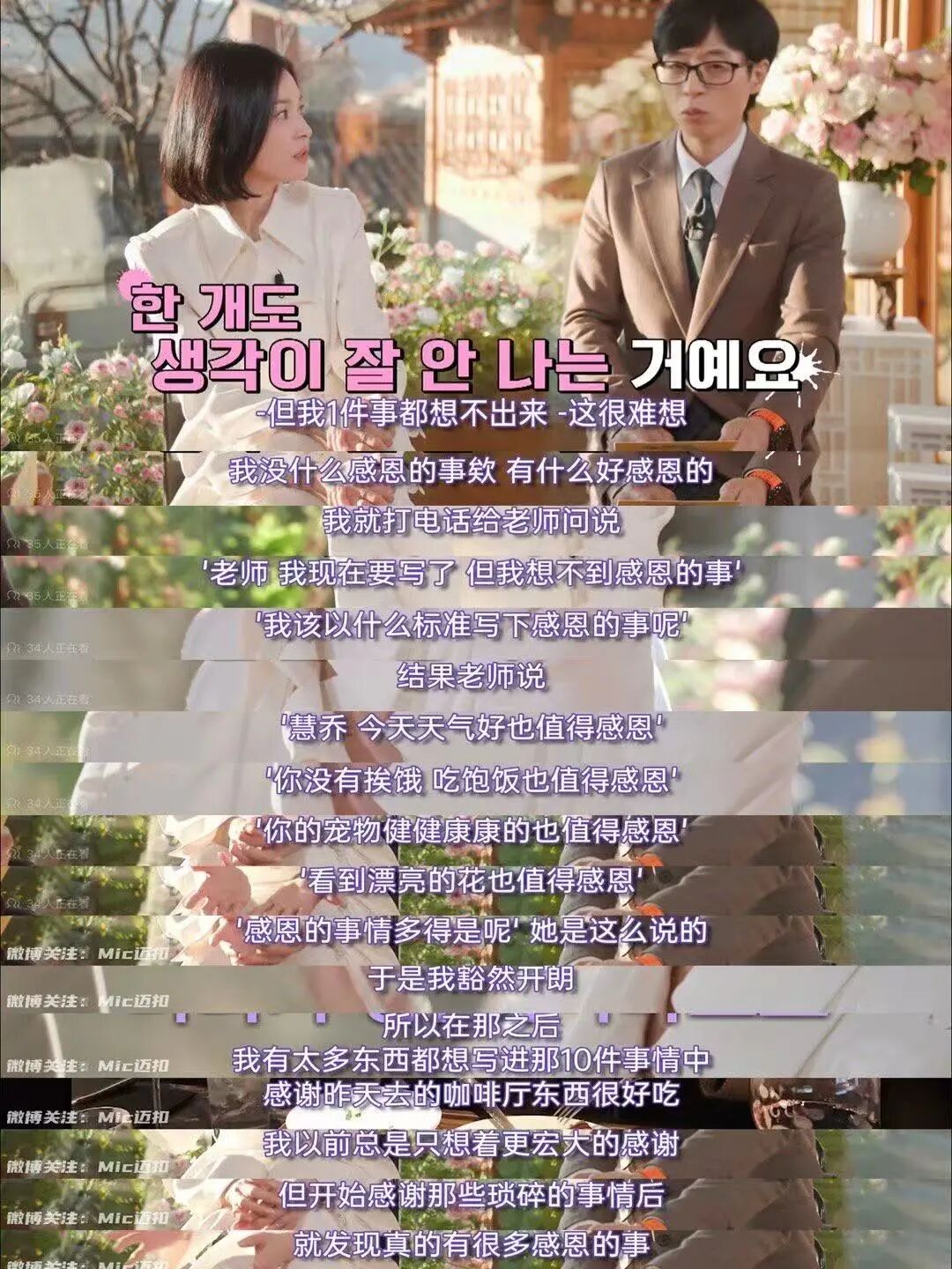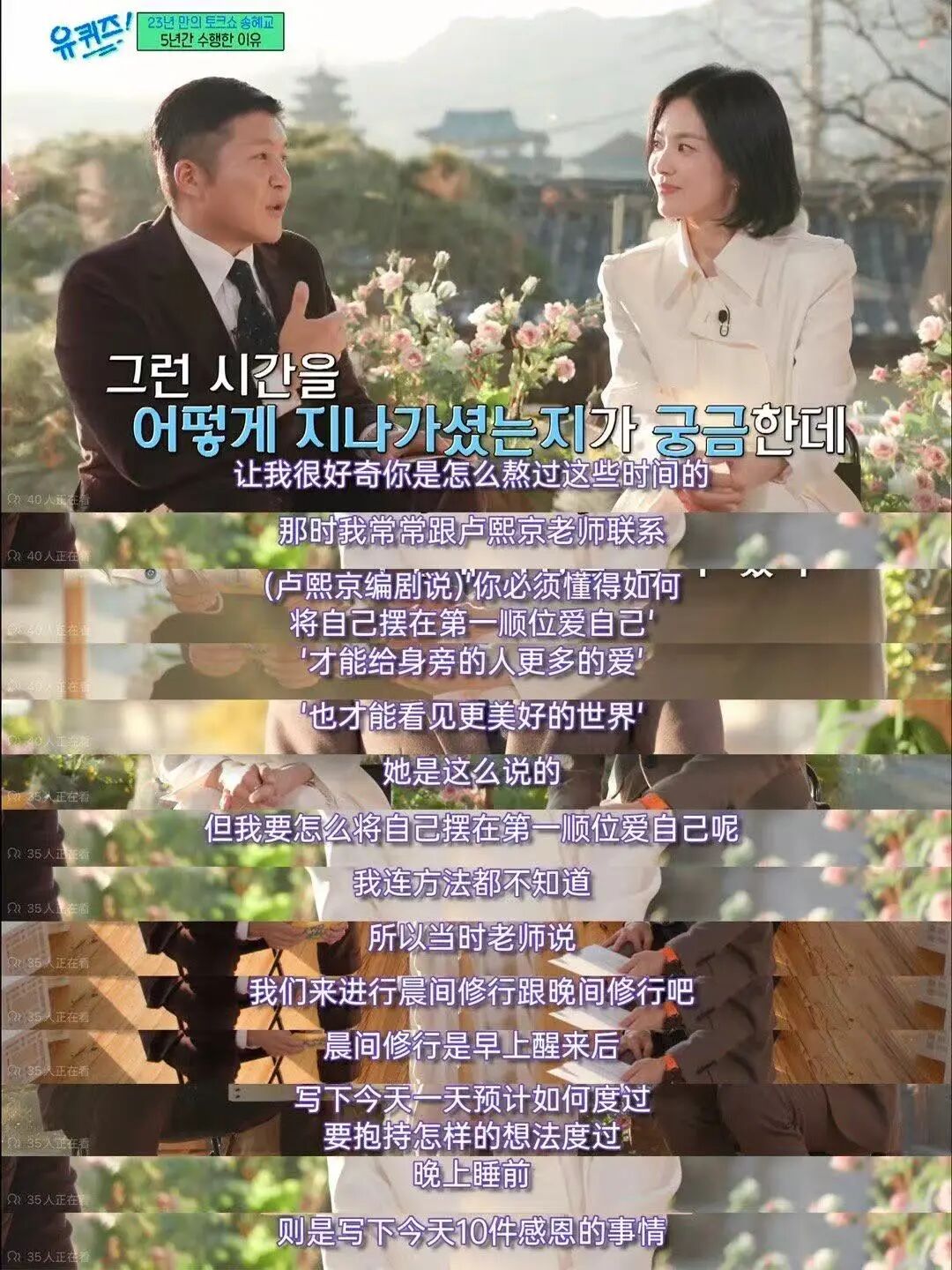 曹世镐问她是如何熬过被攻击、造谣的那几年?她说卢熙京编剧告诉她首先要学会爱自己,要把自己放在第一顺位。