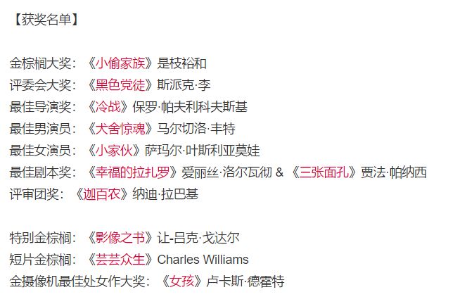 2018的戛纳最佳基本是被日韩电影锁定了,就算不是《小偷家族》,金棕榈奖也很大可能被韩国的《燃烧》夺走。