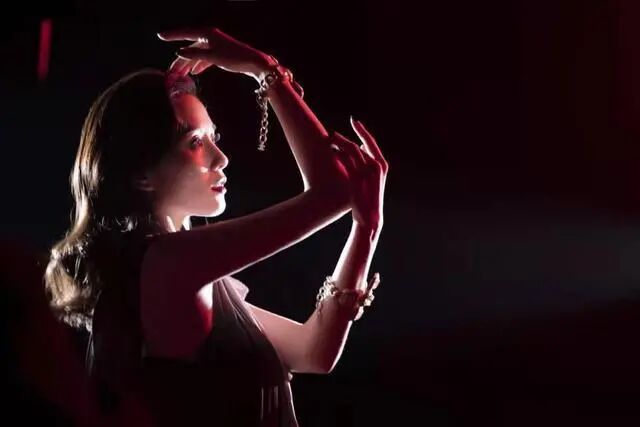 在全黑的造型下,丝毫不会让看起来有任何的臃肿或是单一感,又能够打造出高级感和美艳的气场,黑色的长裙结合了薄纱的设计下都能够展现出美感和时尚的气息,涂抹着大红唇下给予了美艳的气场呀!
