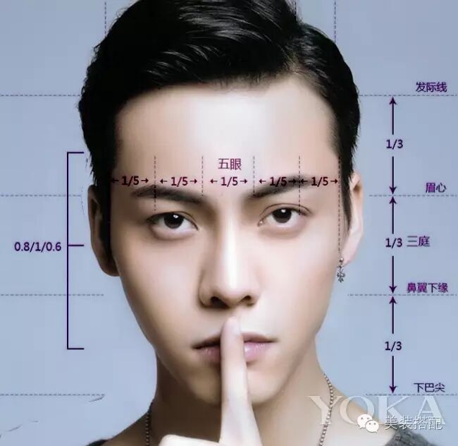 陈伟霆受到大家的喜欢与长相有极大的关系,当然“颜值”高也是有标准的,那就是“三庭五眼”“四高三低”。小编P了一张图,你们感受下: