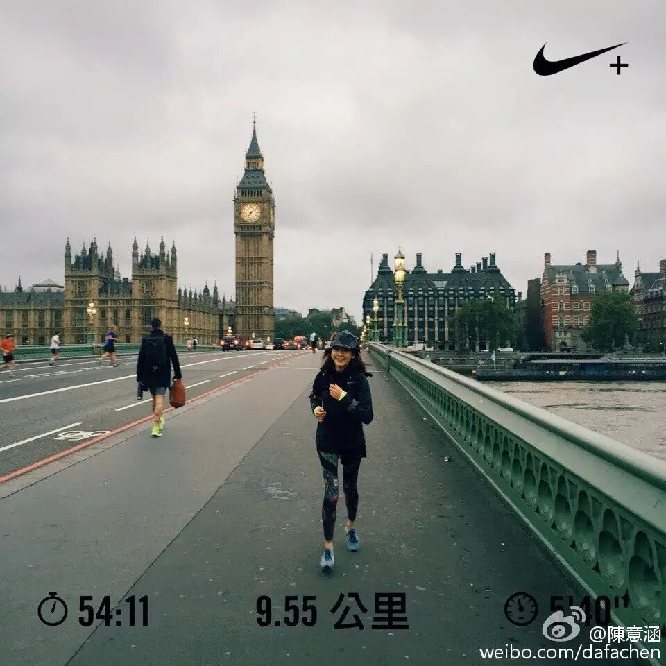 爱运动的姑娘总是精力十足,长途飞行不喊累,一到英国就用跑步来调时差,一直跑到太阳升起。
