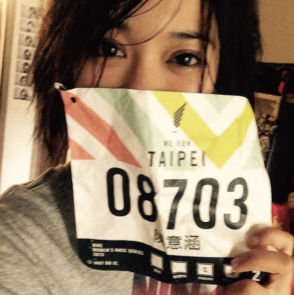 各处的马拉松比赛自然少不了她,一次凌晨四点,刚跑完台湾一场马拉松,洗完澡兴奋地自拍:完赛!开心!