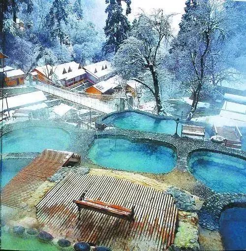 穿过已是银装素裹的原始森林,站在气势磅礴的冰瀑前面,会不由自主地为大自然的鬼斧神工心神涤荡。然后当把自己泡在雪域高原的一池温泉中,所有的感慨只会变成无法言表的舒爽。