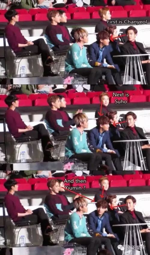 suho看水晶,水晶却跳过了他,在看谁?…当然是在看kai了!(羞)