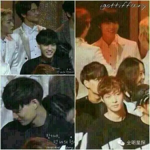 水晶发表获奖感言,台下exo成员灿烈、suho、xiumin齐齐看向kai…这种感觉甜疯了嘤嘤嘤!好像小男生偷偷谈恋爱被小伙伴们起哄的感觉~~但是…
