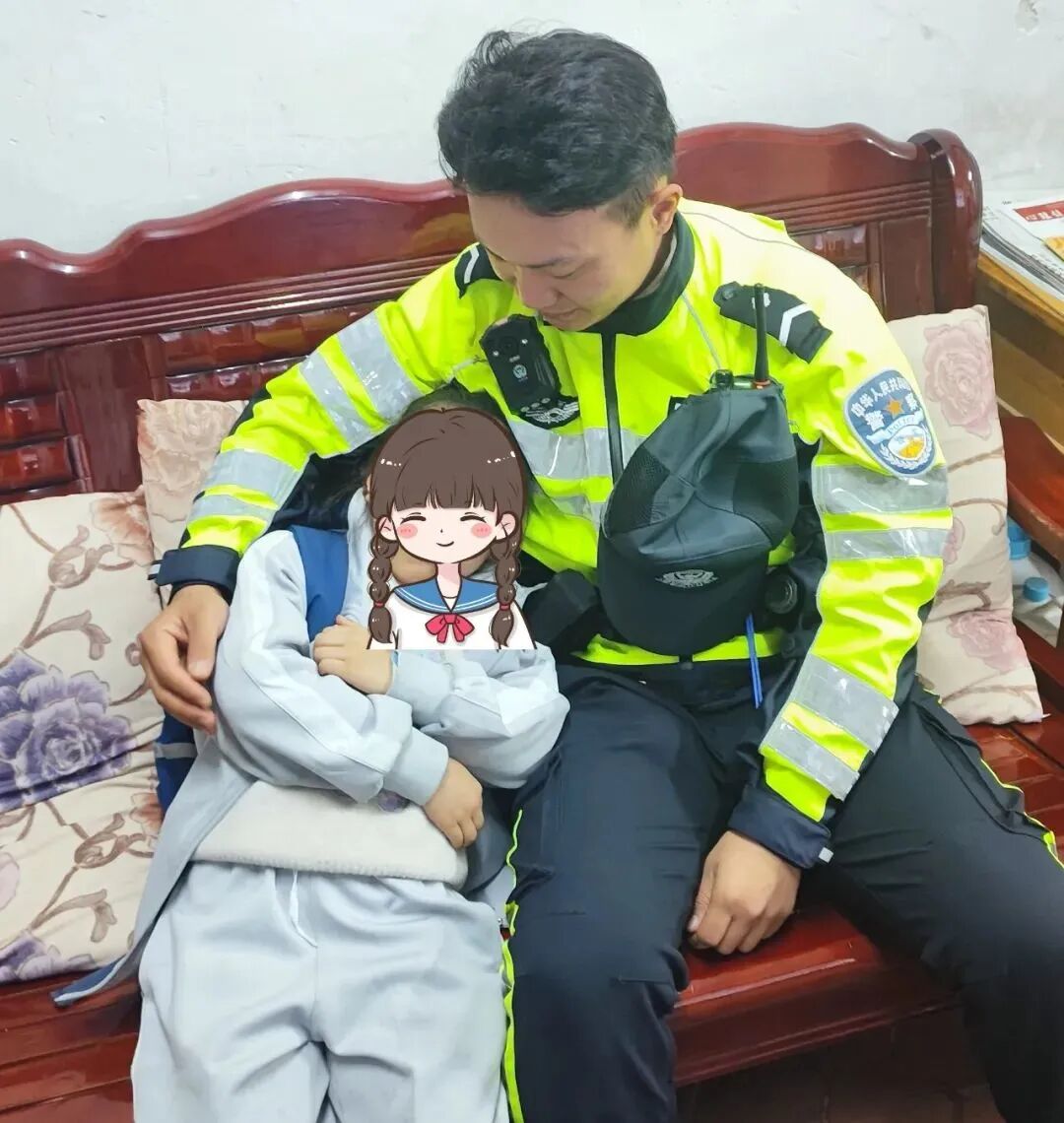 11月22日17时30分许,李荣浩在北门小学门口护学执勤,看见一小女孩坐在校门保安室沙发凳上,眼皮耷拉着,特别疲倦。见此情况,李荣浩走过去轻声问道:“你是不是想睡觉了?”小女孩点点头。“那你靠着我,放心睡吧,我陪着你等妈妈。”兴许是有铁骑哥哥守护,感受到安全的小女孩很快便在李荣浩的臂弯中睡着了。李荣浩微笑着注视着小女孩,一动也不敢动,生怕弄醒了她。这一幕恰巧被保安大叔看到,便拍下了这暖心的画面。