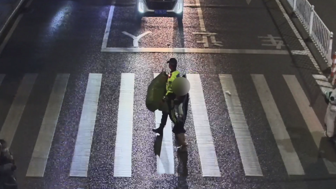 当天正在路口执勤的铁骑队员李荣浩,见到宝妈艰难地提着编织袋时,快步向前说道“我来帮你”,宝妈一抬头便发现刚才还在对面执勤的铁骑,就如“闪电侠”般来到了自己身前。在接过编织袋的一瞬间,李荣浩立马感觉到双手一沉,这袋物品估计有40斤。随后,李荣浩带着宝妈快速通过斑马线来到路边。