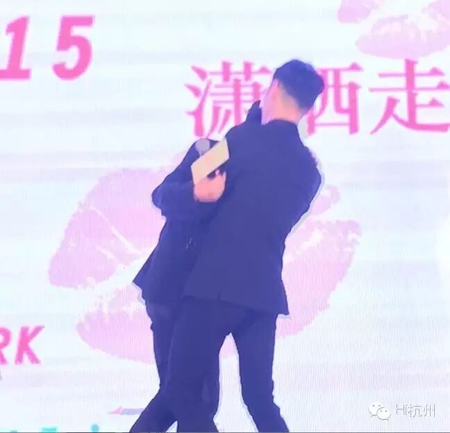 但从一些小表情和小动作里,还是能觉出她和小天超熟。有个细节就是,其他演员表演、现场灯光暗掉时,退到场边的杜鹃,居然俏皮地嗨到整个人揽到阮经天身上,噢不,准确的说,是挂….在了阮经天身上。