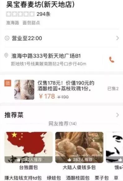 在大众点评的“吴宝春麦坊”的商家信息里,网友们修改了顾客可以填写的推荐菜单。