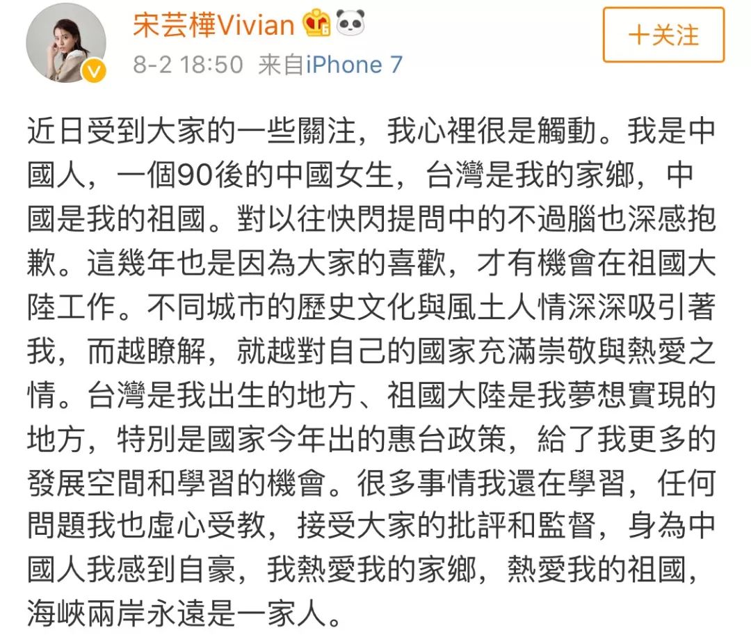 这个视频被曝光后,宋芸桦第一时间在微博上对自己的言论做出了道歉。