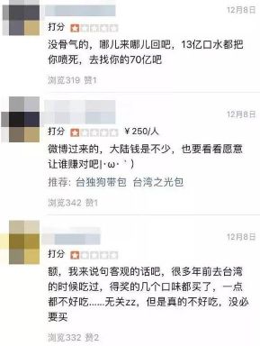 一口一个中国,将台湾和大陆分隔开来,字里行间中充满了对大陆的不屑和对于台湾人这个身份的自豪。