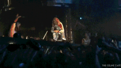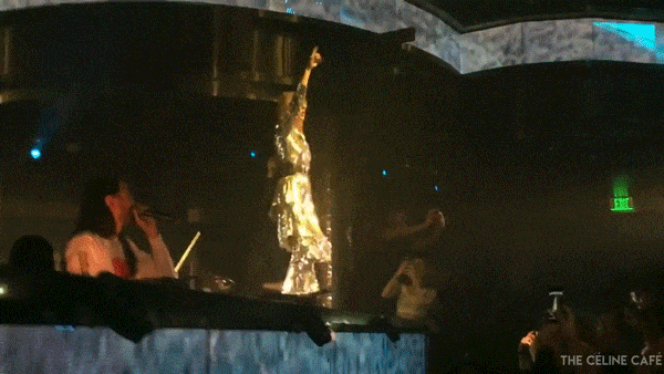 比如前年,她和知名DJ Steve Aoki合作了《我心永恒》的电音版(对,真的有)。在拉斯维加斯的凯撒宫殿固定表演时,一身亮片华丽装扮的天后,刚唱完那句“My heart will go on”,电音响起,全程进入了蹦迪高潮时,她突然就“疯了”。