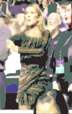 表演开始后,她不负众望,在VIP席位上high到飞起。抖臀耸肩扭胯,乍一看还以为正在和鳖女士一起表演。