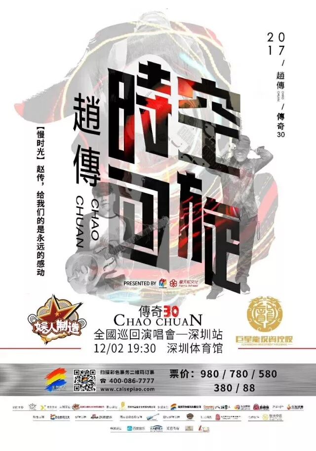 30年,你从呱呱落地到少年初长成,从情窦初开到为人父母,从艰苦创业到事业有成;30十年里有欢笑有哭泣,但每当听到赵传弥补伤痕的声音,我们总能重拾那些给人力量的歌,这是属于我们的精神财富。我们每个在钢筋森林里打滚的人,需要重整旗鼓打点精神,和赵传一起在歌声中“回旋时空”。不管你从哪个遥远的城市来,呼朋唤友和赵传一起快乐欢聚,大声唱出心底的那首传世经典。