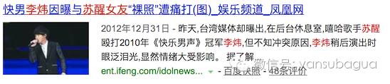 最大的绯闻是和另一位快男李炜打架的故事,苏醒自己的微博还隐晦地用“苹果”来暗示李炜挖角自己当时的女朋友。