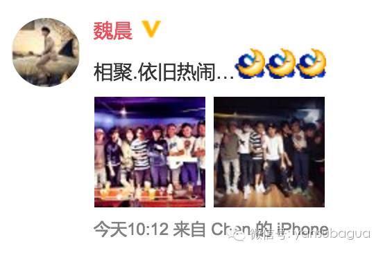 早上魏晨发了两张合影,是07快男13强里的九个人聚会的照片。