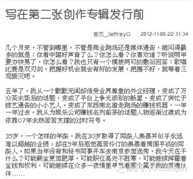 2012年发第二张专辑,他还写过长微博感叹自己5年来的心酸