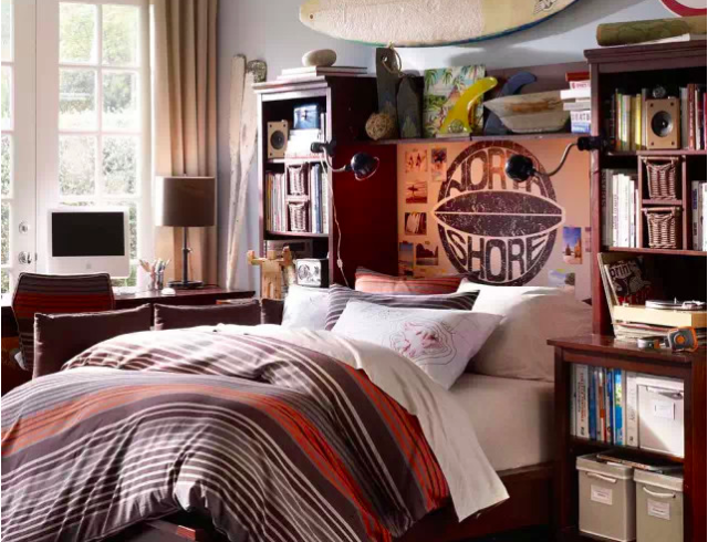 ▲十几岁男孩子的房间,很多都用到了黑色、棕色或者蓝色,尝试用鲜艳一点的颜色其实也挺好的。