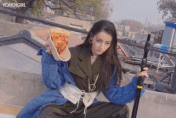有一次拍杂志的时候,热巴手里的道具披萨掉地上了,这生无可恋的表情,每个吃货都懂。