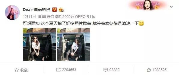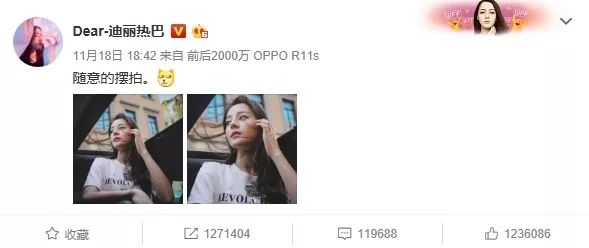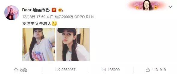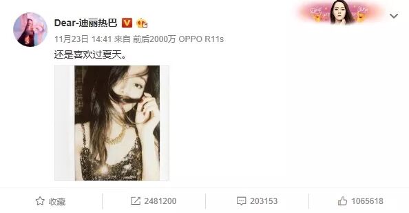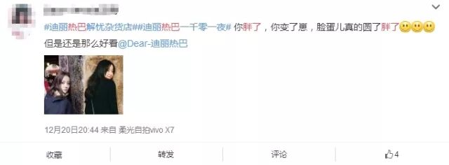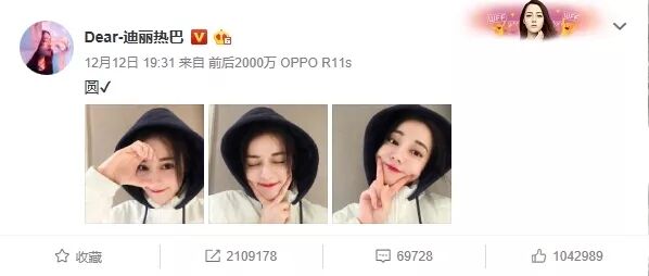 迪丽热巴也在微博上发了三张自拍,写了一个字“圆”,看来热巴也觉得自己长胖了。