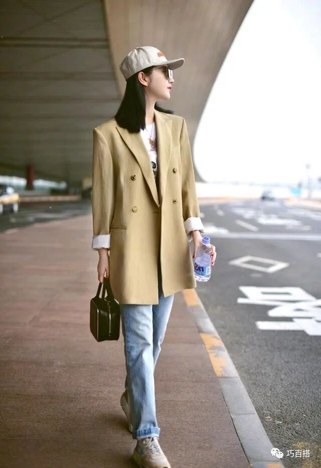 景甜虽然长相气质精致甜美,却很喜欢反差感的搭配,日常搭配尤爱超A的西装。当然景甜在穿衣方面拥有着自己的见解,总能把西装穿出自己的风格。就说这次的搭配,景甜一款休闲风的西装外套,与学院风的卡通白T+牛仔裤的内搭碰撞,上身尽显青春少年感。当然景甜的细节搭配更加分,与内搭风格统一的棒球帽,搭配黑长直的发型,既穿出了休闲减龄风的style,还凸出了女性美,上身更让人眼前一亮。