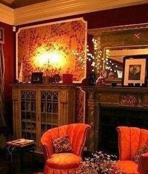 暖红色壁炉+暖红色沙发+暖红色地毯