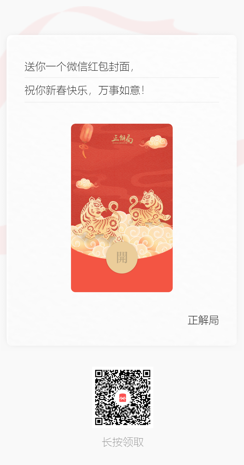 (提示:领取红包封面后,发送红包时选择红包封面“正解局”,点开红包就可以看到正解局的祝福视频啦)