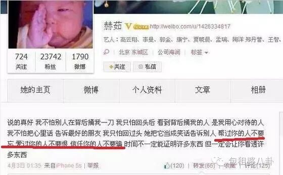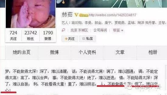 2014年初赫茹就连发了三条意有所指的微博,划重点“假”“忘恩负义”“人品差”