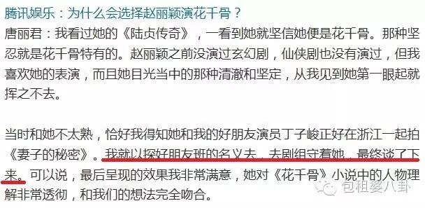不过她所说的花千骨是自己帮赵丽颖接下的,却遭到了打脸,花千骨制片人在接受访谈时说定下女主是她亲自跑去跟赵丽颖谈的