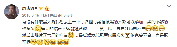 周 杰:我并没有去思考过为什么有些媒体黑我,也没有去思考过为什么网上会有人造谣这样的事情,我很能理解这件事。尽管我是一个特别怕别人误解我的人。